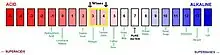 O nível de pH de um vinho é a medida da quantidade de íons de hidrogênio livres (H+). Ele está relacionado ao nível de acidez titulável de um vinho, mas difere de forma significativa. Números baixos de pH indicam uma alta concentração de ácidos em uma solução. Enquanto a água pura é neutra, com um pH de 7, o vinho tende a ser mais ácido, com um pH entre 3 e 4. À medida que os níveis de acidez nas uvas em amadurecimento caem, a concentração de ácidos diminui, o que significa que o nível de pH está aumentando. Leveduras, bactérias e compostos fenólicos, como as antocianinas, que influenciam a cor, têm tolerância variável a vinhos com altos níveis de pH. Em geral, os vinhos com alto valor de pH tendem a ter cores mais opacas e sabores menos desenvolvidos, além de serem mais propensos a falhas no vinho causadas por organismos de deterioração, o que torna o monitoramento dos níveis de pH das uvas durante o amadurecimento uma prioridade para viticultores e vinicultores.[2]