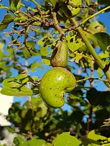 Geralmente, quando a flor é polinizada (fecundada), o pedicelo se desenvolve num processo chamado hipertrofia, resultando na formação do pedúnculo do caju. Em paralelo, o ovário inicia o crescimento, dando origem à castanha, inicialmente chamada de maturi.[3]
