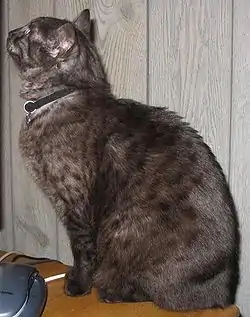 O seu aspecto é perfeitamente balanceado entre esbelto e roliço. A sua cabeça triangular é levemente arredondada. O focinho não é pontudo e os seus olhos são oblíquos, de formato oval, geralmente de cor verde. Existem três cores, tendo exemplares prata, bronze e preto fosco. A cor principal é composta de pelos listrados com pontas pretas. Pelo menos duas listras devem ser visíveis em cada pelo. A coloração preta pode modificar para um marrom claro se o gato for exposto ao sol forte por muito tempo. Todas as pigmentações possuem a usual padronagem malhada associada aos tabbies. As próprias manchas devem ser claramente definidas. As malhas são redondas e distribuídas de modo uniforme por todo o corpo do gato. Há também os chamados "botões de colete" no peito e barriga. Em filhotes recém-nascidos, as malhas são menos definidas. O contraste na coloração leva até dois anos para desenvolver-se completamente. A base dos pelos é esbranquiçada e as pontas pretas, criando um contraste quando o gato se mexe.[2]