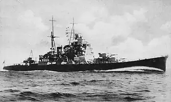 | Blindagem | Cinturão: 38 a 127 mm Convés: 37 mm Anteparas: 76 a 100 mm Torres de artilharia: 25 mm |