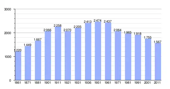 | Variação demográfica do município entre 1861 e 2011[3] |
