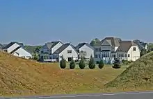 Nas comunidades suburbanas, McMansion é um termo pejorativo para uma grande residência "produzida em massa", construída com materiais e artesanato de baixa qualidade, usando uma mistura de símbolos arquitetônicos para invocar conotações de riqueza ou gosto, executadas via design exterior e interior mal imaginado.[1] Um exemplo de um McWord, "McMansion" associa a qualidade genérica dessas casas de luxo com a de fast food produzida em massa, evocando a cadeia de restaurantes McDonald's.[2]