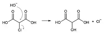 Na substituição nucleofílica, um nucleófilo utiliza um par de elétrons não ligantes para estabelecer uma ligação com o substrato; e o nucleófugo (grupo abandonador) quebra sua ligação com o substrato, levando consigo um par de elétrons. Há possibilidade de formação de intermediário carbocátion.