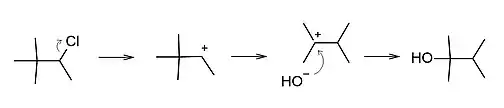 Nesse tipo de rearranjo, após a formação de um cátion (comumente um carbocátion), o grupo migratório leva consigo um par de elétrons, deixando o átomo ao qual ele estava originalmente ligado com uma camada de valência incompleta, com um sexteto. A etapa final consiste na restauração do octeto do átomo eletrodeficiente.