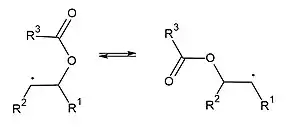 No rearranjo radicalar, após a formação de um radical, o grupo migratório leva consigo apenas um elétron, levando o radical a se formar em um átomo diferente do inicial.
