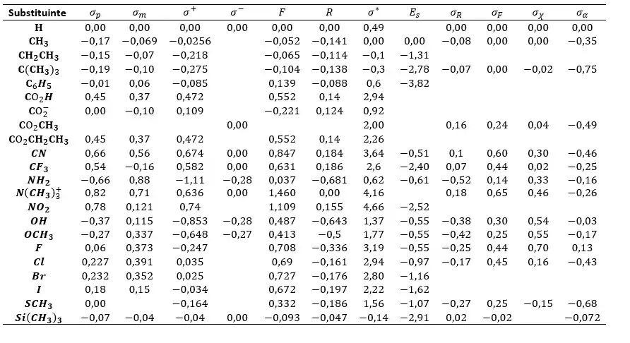- Taft, R. W., & Lewis, I. C. «The General Applicability of a Fixed Scale of Inductive Effects. II. Inductive Effects of Dipolar Substituents in the Reactivities of m- and p-Substituted Derivatives of Benzene». Journal of the American Chemical Society, 80(10): 2436–2443. doi:10.1021/ja01543a023