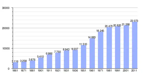 | Variação demográfica do município entre 1861 e 2011[3] |