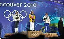 Pódio da perseguição masculina em Vancouver 2010.