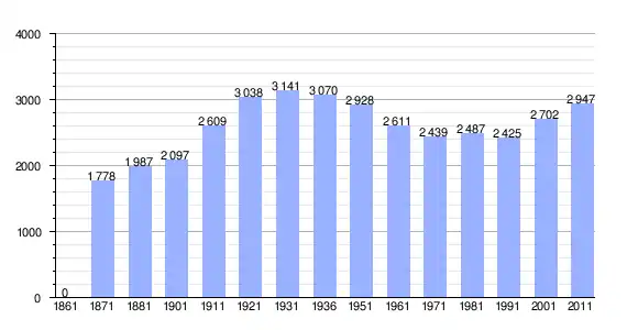 | Variação demográfica do município entre 1861 e 2011[3] |