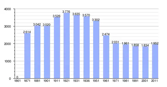 | Variação demográfica do município entre 1861 e 2011[3] |