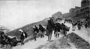 Em abril de 1915, o governo Otomano começou o extermínio sistemático de seus cidadãos de minoria armênia, conhecido como o Genocídio armênio. O genocídio realizado durante e após a I Guerra Mundial foi implementado em duas fases: a de matar a apta população masculina, através de execuções e de sujeição dos inscritos no exército ao trabalho forçado, seguido pela deportação de mulheres, crianças, idosos e enfermos nas marchas da morte para o Deserto Sírio. Impulsionados por escolta militar, os deportados foram privados de comida e água e submetidos a periódicos roubos, estupros, e o massacre.[7][8]