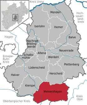 | Localização de Meinerzhagen no distrito de Märkischer Kreis | |