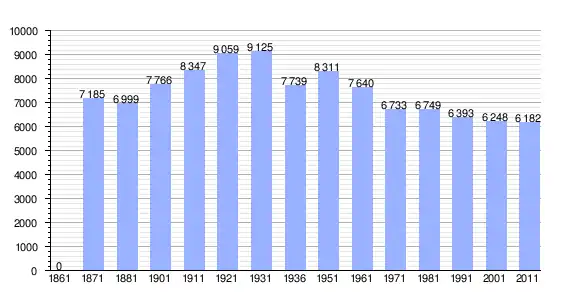 | Variação demográfica do município entre 1861 e 2011[3] |
