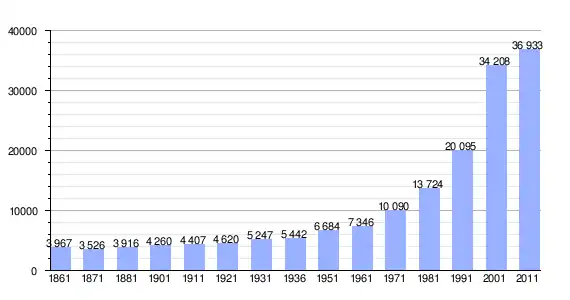 | Variação demográfica do município entre 1861 e 2011[3] |
