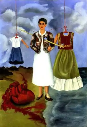 O coração de Kahlo aparece como um órgão em sangue, mutilado, fora de seu corpo. Sangue escorre dele e mistura-se com a areia e o mar. Dois vestidos estão ao lado da pintora, o de uma colegial e outro tradicional da cultura mexicana. Contêm cada um o pedaço de um braço. O braço que sai do vestido de uma colegial tenta tocar Kahlo, mas não a alcança; o outro vestido apoia a pintora, sem braço e imóvel.[3][1]
