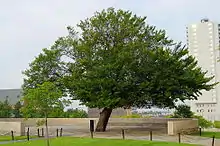 - A Árvore Sobrevivente: Um olmo americano no lado norte do Memorial, essa era a única árvore de sombra no estacionamento do outro lado da rua do Edifício Murrah. Os passageiros chegaram cedo para pegar um dos lugares de estacionamento com sombra fornecidos por seus ramais. Fotos de Oklahoma City, tiradas nos anos 20, mostram que a árvore tinha cerca de 100 anos de idade.[6] Fortemente danificada pela bomba, a árvore sobreviveu após quase ter sido derrubada durante a investigação inicial, quando os trabalhadores queriam recuperar evidências penduradas em seus galhos e enterradas em sua casca.[7]
