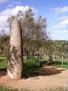 Consiste num menir de granito porfiróide de grandes dimensões, com cerca de 3,5 metros de altura a partir da superfície do solo, com secção elíptica de 1,20 x 0,80 metros. Está implantado no topo da encosta, 1,3 km a nordeste do Cromeleque dos Almendres, apresentando-se isolado deste,[2] embora se suponha haver íntima relação, entre ambos, uma vez que o seu alinhamento coincide com o nascer do sol no Solstício de Verão.[3]