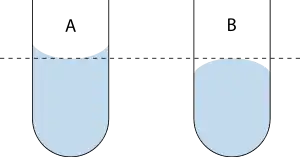 Inversamente, originam-se meniscos convexos quando as partículas no líquido têm uma atração mais forte entre elas do que com o material do recipiente. Produzem-se meniscos convexos, por exemplo, entre o mercúrio e o cristal nos barómetros[2] e termómetros.