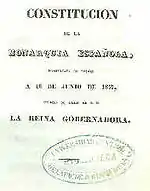 Ainda que em princípio tratava-se de reformar a Constituição de 1812, a de 1837 foi uma Constituição completamente nova, elaborada sobre a base de um verdadeiro consenso que tentava superar a discussão entre progressistas e moderados com respeito à questão da soberania nacional. O texto, muito curto, reconheceu o poder legislativo às Cortes —num sistema bicameral com o Congresso dos Deputados e o Senado— junto ao Rei, a quem correspondiam as prerrogativas próprias do Chefe do Estado e do poder executivo, e que delegó mais tarde na Presidência do Conselho de ministros, mas se reservando grande capacidade de manobra, como a dissolução das Câmaras. O texto amparava a liberdade de imprenta, entre outros direitos individuais.