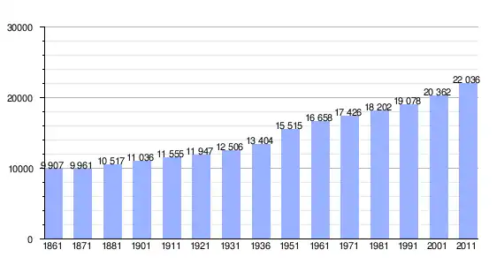 | Variação demográfica do município entre 1861 e 2011[3] |