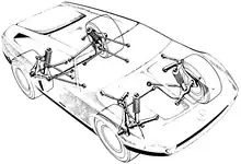 | Layout | Motor transversal, tração traseira, motor traseiro central, tração traseira | ||