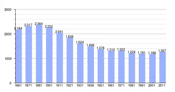 | Variação demográfica do município entre 1861 e 2011[3] |