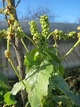 As inflorescências masculinas são em glomérulo e acumulam grupos de 6 a 8 flores, alcançando 4 a 5 milímetros de diâmetro. Estes glomérulos, por seu turno assentam em inflorescências em forma de espiga (espiciformes), que podem medir entre 6 e 12 centímetros de comprimento, [13] sendo geralmente maiores do que a respectiva folha.[5] As inflorescências femininas têm um posicionamento axilar, podendo ser solitárias ou agrupar-se em verticilos de 3 ou 4 flores e têm pedúnculos curtos.[13][8]