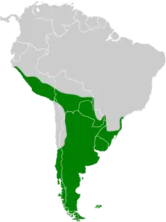 Seu habitat natural são lagos de água doce, desde o nível do mar até cerca de 4 500 m de altitude. Encontrada no Peru, Bolívia, Paraguai, Chile, Argentina, Ilhas Malvinas e Ilhas Geórgia do Sul e Sandwich do Sul.[2] No Brasil, está presente do Pantanal do Mato Grosso ao Rio Grande do Sul.[3]