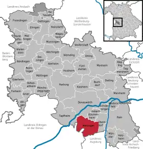 | Localização de Mertingen no distrito de Donau-Ries | |