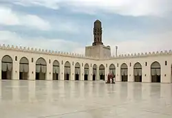 A mesquita foi originalmente construída para ser uma prisão para o vizir Jauar Assiquili ("o Siciliano"; c. 928-992) e foi incorporada pelas extensas fortificações construídas por Badre Aljamali. O complexo consiste num retângulo com quatro arcadas à volta de um pátio. Uma característica rara é a entrada monumental, com sua varanda em pedra. A mesquita se localiza no "Cairo islâmico", na parte leste da Rua Muizz, logo ao sul do Bab al-Futuh (o portão norte).