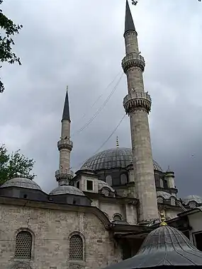 - Trecho baseado no artigo artigo «Eyüp Sultan Mosque» na Wikipédia em inglês (acessado nesta versão).