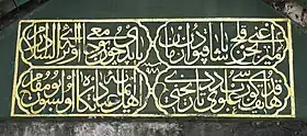 Há dois cronogramas que datam a mesquita, ambos produzindo o ano 988 do Hégira (Calendário Islâmico), (1580 no calendário juliano). Uma das duas inscrições, na entrada exterior do complexo, possui um poema 4 versículo em jali Thuluth caligrafia escrita em turco otomano do poeta Ulvi e escrito pelo calígrafo Demirciculu Iúçufe.