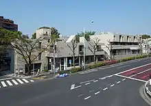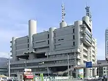 Em 1961, Kenzo Tange recebeu uma comissão do Yamanashi News Group para projetar um novo escritório em Kōfu. Bem como duas novas firmas e uma companhia de imprensa precisavam ser incorporadas a uma cafeteria e lojas no primeiro piso para ligar com a cidade adjacente. Também era preciso ser flexível em seu projeto para permitir futuras expansões.[46]