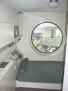 As cápsulas são construídas em treliças soldadas de aço leve cobertas com chapas de aço montadas nos núcleos reforçados de concreto. As cápsulas têm 2.5 metros de largura e quarto metros de comprimento com uma janela de 1.3 metros de diâmetro em uma das pontas. As unidades originalmente continham uma cama, armários, um banheiro, uma televisão em cores, relógio, refrigerador e ar-condicionado, embora adicionais opcionais como um rádio estivessem disponíveis. Embora as cápsulas fossem desenhadas com a produção em massa em mente, nunca houve tamanha demanda.[52]