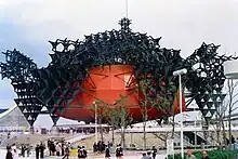 A Torre da Exposição de Kikutake foi posicionada na mais alta colina nos jardins e funcionava como um marco para os visitantes.[70]