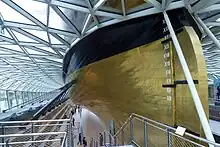 A popa restaurada do Cutty Sark revestida de metal Muntz.