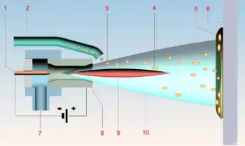 - Pistola de pulverização, também chamada ‘’’Tocha’’’, que é o dispositivo que vai realizar a fusão e aceleração das partículas fundidas a serem depositadas;