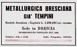 A Metalúrgica Bresciana già Tempini, foi criada na cidade de Brescia em 1884. Fornecia, no seu início, para a "Regio Esercito" e a "Regia Marina" todos os tipos de |munições e projéteis militares de diferentes calibres. Dirigida por Giovanni Tempini e presidida pelo berlinense Isidoro Loewe e, o crescimento da empresa, se deveu em grande parte às patentes alemãs. Sua história é rica em reviravoltas e sucessos de todos os tipos. Empresa privada de fabricação de armas e munições, conhecia todas as consequências dos conflitos armados e suas consequências.[1]