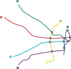 A rede está conformada atualmente por seis líneas denominadas com letras — da A à E e a H— e identificadas com cores, que supõem uns 52,3 km de vias. A totalidade da rede é subterrânea, não existindo tramo algum a nível ou em viaduto.
