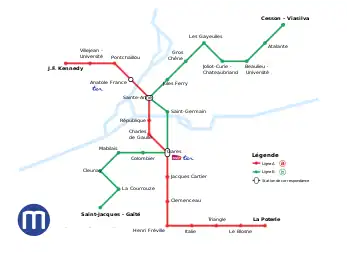 É constituído apenas por uma linha com 9,4 quilómetros de comprimento que circula de Noroeste para Sudeste desde a estação de J.F. Kennedy até a de La Poterie.