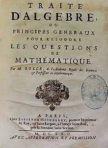 Em seu livro Traité d'algèbre (1690) encontra-se a primeira descrição na Europa do algoritmo de eliminação de Gauss, que Rolle chamava de método da substituição.[2]