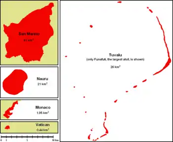 Na tabela abaixo estão listados os Estados soberanos com área menor que 1000 quilômetros quadrados.