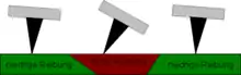 Para utilizar essa técnica é necessário uma ponteira extremamente dura. É feita uma identação na amostra e o aparelho faz o percurso desejado, conforme a ponteira vai se movendo, a amostra é sendo litografada ("arranhada").[24][25] Pode-se fazer uma analogia com um campo sendo arado. O tip vai "arranhando" (identando) a superfície de maneira análoga a um arado esculpindo o solo, de modo que padrões podem ser desenhados dessa maneira.