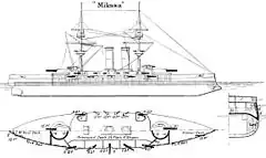 | Armamento | 4 canhões de 305 mm 14 canhões de 152 mm 20 canhões de 76 mm 16 canhões de 47 mm 4 tubos de torpedo de 450 mm |
