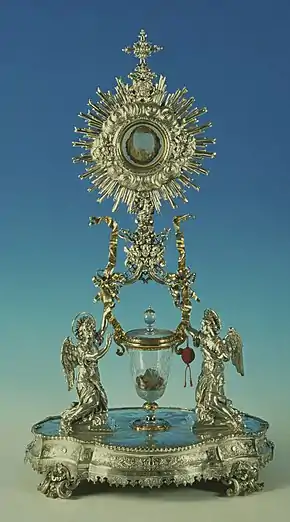 A Hóstia-carne permaneceu conservada, apresentando uma coloração ligeiramente escura, tornado-se rósea se iluminada pelo lado oposto,com uma aparência fibrosa; o sangue-vinho era de cor terrosa, entre amarelo e o ocre, coagulado em cinco fragmentos de formas e tamanhos diferentes. Inicialmente essas relíquias foram conservadas num tabernáculo de marfim e, a partir de 1713, até hoje, passaram a ser guardadas num ostensório de prata, e o sangue, num cálice de cristal.[carece de fontes]