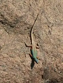 Outro exemplo de mimetismo sexual ocorre em Broadley's Flat Lizard, <i id="mwgw">Platysaurus broadleyi</i>, onde alguns machos imitam fêmeas. Machos de lagarto plano tendem a ser territoriais e agressivos com outros machos. Portanto, é benéfico para alguns machos imitar as fêmeas, a fim de evitar encontros agressivos e mover-se livremente pelo território do macho, em busca de parceiras. Existem dois tipos de machos nesta população; ela-machos, que imitam as fêmeas, e ele-machos, que parecem machos. Os machos podem enganar visualmente os machos hein, fazendo-os acreditar que são fêmeas devido à sua morfologia feminina. No entanto, os machos não podem enganar os machos he por cheiros, pois os machos podem detectar a diferença. Portanto, as fêmeas mais bem-sucedidas são aquelas que evitam o contato próximo com outros machos, reduzindo assim as chances de detecção por meio de sinais químicos.[15]