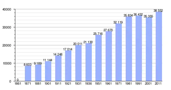 | Variação demográfica do município entre 1861 e 2011[3] |