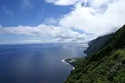 Miradouro da Fajã dos Cubres, ao fundo Fajã dos Cubres de a Fajã da Caldeira de Santo Cristo.