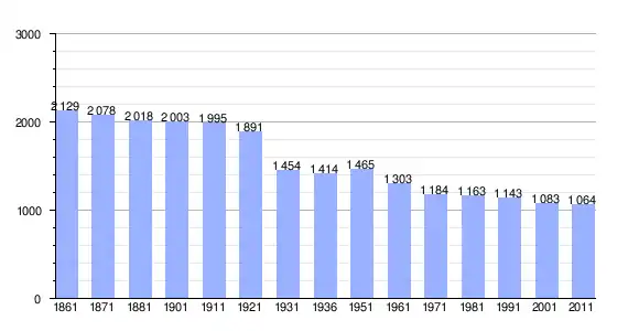 | Variação demográfica do município entre 1861 e 2011[3] |
