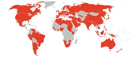 Mapa das missões diplomáticas da Malásia.